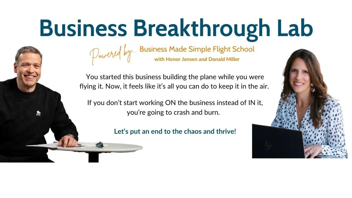 The Business Breakthrough Lab, powered by Small Business Flight School, is a hands-on, rapid pace program for small business owners who are serious about implementing a plan to grow their business and revenue.